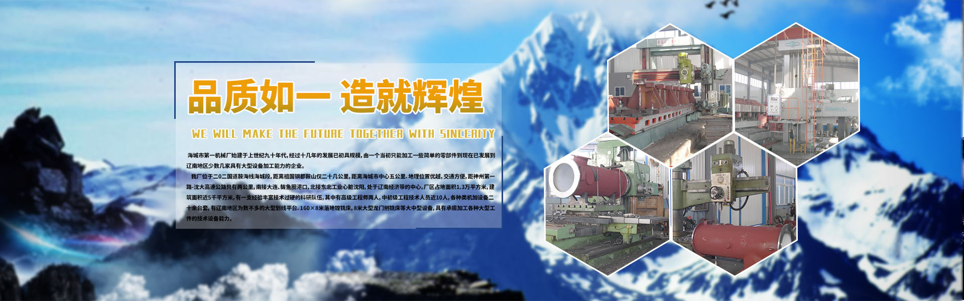 海城市第一机械厂始建于上世纪九十年代,经过十几年的发展已初具规模,由一个当初只能加工一些简单的零部件到现在已发展到辽南地区少数几家具有大型设备加工能力的企业。